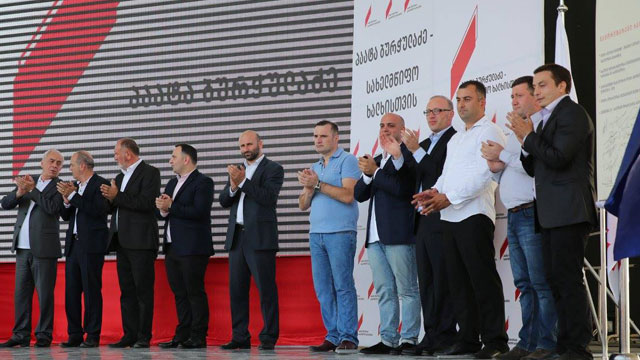 ფოტოზე: მაჟორიტარობის კანდიდატების წარდგენა, მარჯვნიდან პირველი გიგა გლუნჩაძე