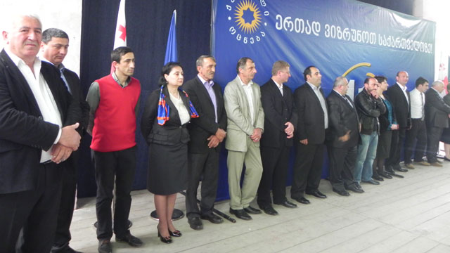 კოალიციის მხარდამჭერების წინაშე თავდაპირველად ლიტერატურული თეატრის ხელმძღვანელი, იზა ვეფხვაძე წარდგა. მან აღნიშნა, რომ საქართველოში დასრულდა ერთპარტიული ეპოქა, როცა ადამიანებს ეზღუდებოდათ თავისუფალი არჩევანის უფლება. მისივე თქმით, დღევანდელი ხელისუფლებისთვის ადამიანი გახდა უმთავრესი პრიორიტეტი. „თქვენ გეძლევათ საშუალება, არა მარტო აირჩიოთ თქვენთვის სასურველი კანდიდატი, არამედ მონაწილეობდეთ მართვაში – უკარნახოთ, როგორი გინდათ იყოს თქვენი სოფელი, თქვენი ხარაგაული.“ იზა ვეფხვაძემ აღნიშნა, რომ მოსახლეობამ საკუთარ თავზე გამოსცადა დღევანდელი ხელისუფლების მხარდაჭერა სოციალური, ეკონომიკური, სამართლებრივი თუ ბიზნესის კუთხით. მთავარი კი, მისი თქმით, ადამიანებისთვის დაბრუნებული თავისუფლებაა.