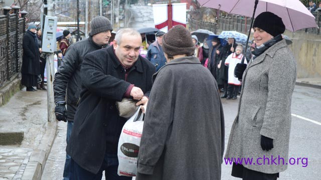 12 საათზე შეიკრიბნენ ხარაგაულის რკინიგზის სადგურთან შობის დღესასწაულის მახარობლები, – ხარაგაულის ეკლესიის მრევლი, მგალობლები, ეკლესიის მოძღვარი მამა ანდრია და ადგილობრივი ხელისუფლების წარმომადგენლები.