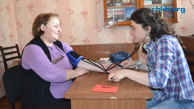 ხარაგაულის საზოგადოებრივი ჯანდაცვის ცენტრის თანამშრომლები დაბა ხარაგაულის ქუჩებში მოსახლეობას ჰიპერტენზიის შესახებ საინფორმაციო ბუკლეტებს ურიგებენ და წნევის გაზომვას სთავაზობენ.