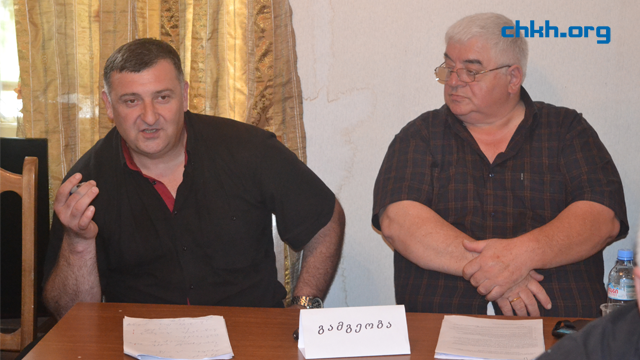 ფოტოზე: ხარაგაულის საზოგადოებრივი ჯანდაცვის ცენტრის დირექტორი შმაგი ხიჯაკაძე და საფინანსო-საბიუჯეტო სამსახურის უფროსი ვლადიმერ გელაშვილი საკრებულოს სხდომაზე
