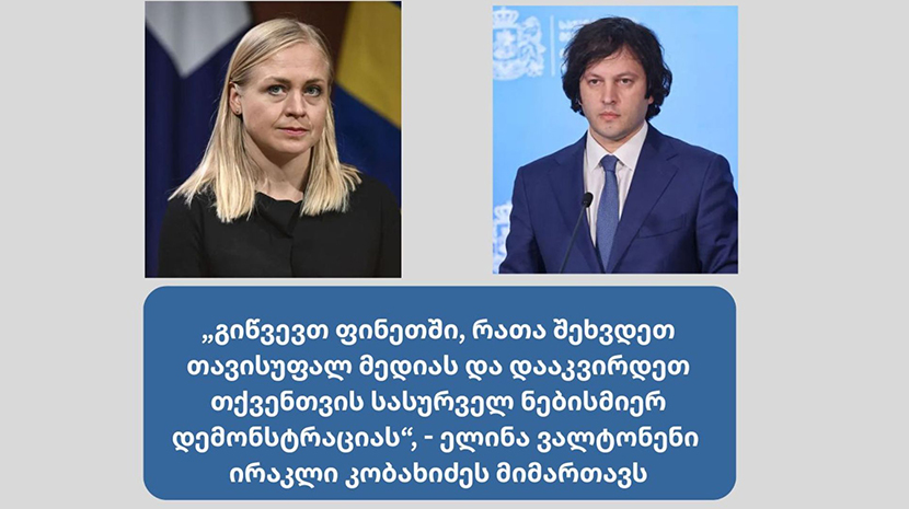 ეუთოს თავმჯდომარე, ფინეთის საგარეო საქმეთა მინისტრი, ელინა ვალტონენი ირაკლი კობახიძეს მიმართავს: „პრემიერ-მინისტრო კობახიძე, საქართველოს მომავალი მხოლოდ ქართველი ხალხის გადასაწყვეტია. იგივე […]