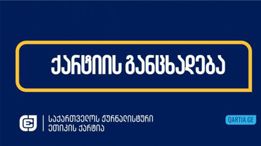 ჟურნალისტური ეთიკის ქარტია მოითხოვს, დაუყოვნებლივ შეწყდეს ადმინისტრაციული საქმის წარმოება მისი მედიაპლატფორმის „მედიაჩეკერის“ ჟურნალისტის, ნინია კაკაბაძის, მიმართ და გაუქმდეს შედგენილი ადმინისტრაციული სამართალდარღვევის ოქმი.