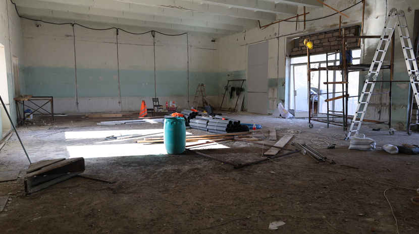 ხარაგაულის ადმინისტრაციული შენობის მეორე სართულზე სხდომათა დარბაზის რეაბილიტაცია და ამის პარალელურად, – შენობის გადახურვა მიმდინარეობს.
